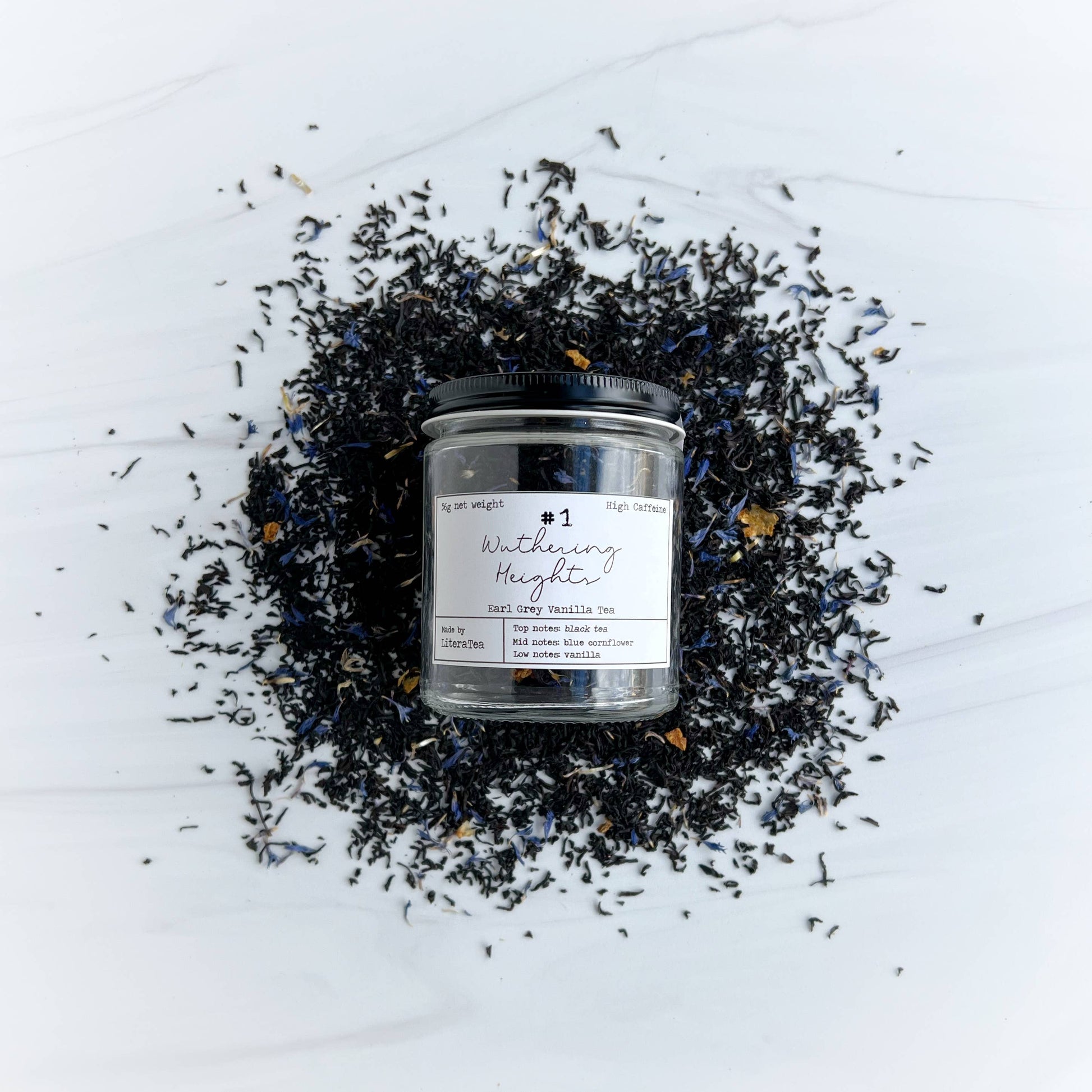 Blended with Black Tea, Orange, Blue Cornflowers, Natural Vanilla Flavor, Natural Bergamot Flavor and Natural Creme Flavor.